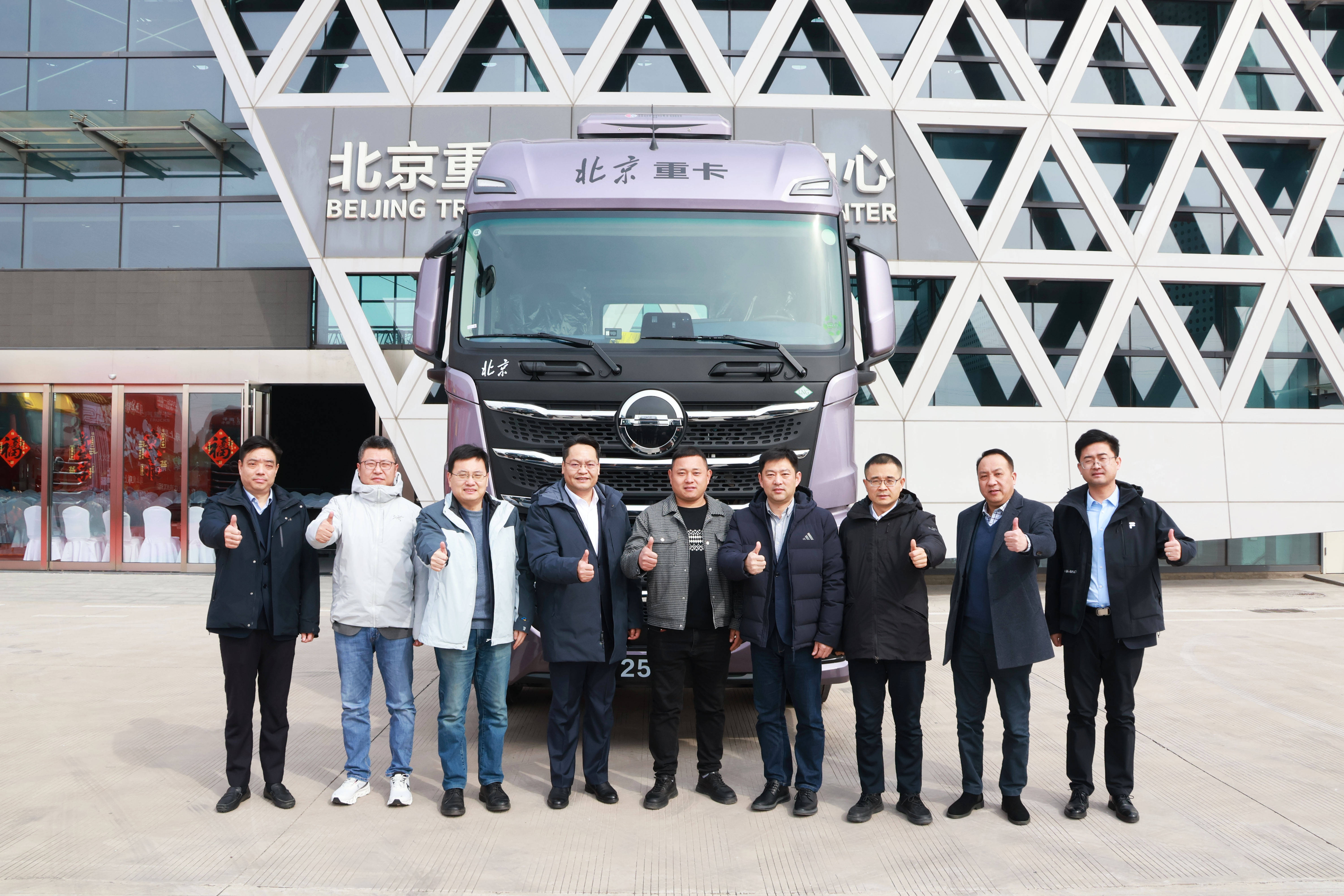 签约仪式后,三方领导共同向用户代表交付了第2550台搭载前装ETC的北京重卡“追梦”车型。这标志着前装ETC产品已实现规模化落地,正式进入市场化运营与用户深度体验阶段。