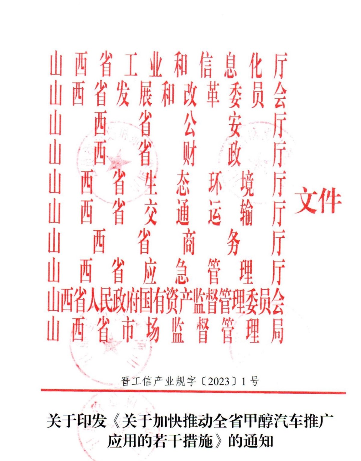 关于印发《关于加快推动全省甲醇汽车推广应用的若干措施》的通知