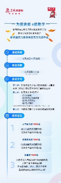 此次“为爱满载 e起助学”公益活动,所有家有应届高考生子女且高考分数达到当地大专分数线及以上的东风轻型车车主均可参与,最终将从参与报名的车主中审核评选出24个助学金名额,进行专项资助。评选分为“人气助力奖”和“风雨同舟奖”两个方向进行:通过投票评选出票数最多的12位入选“人气助力奖”;根据目前车辆行驶里程数评选出行驶里程最长的12位获得“风雨同舟奖”。24名车主每人将获得5000元奖励。同时特设彩蛋奖:由东风汽车股份从以上获奖者中,评选出3篇内容最精彩、感人、励志的故事叠加获得彩蛋奖励5000元/位(该3名车主每人至高可得1万元助学金)。
