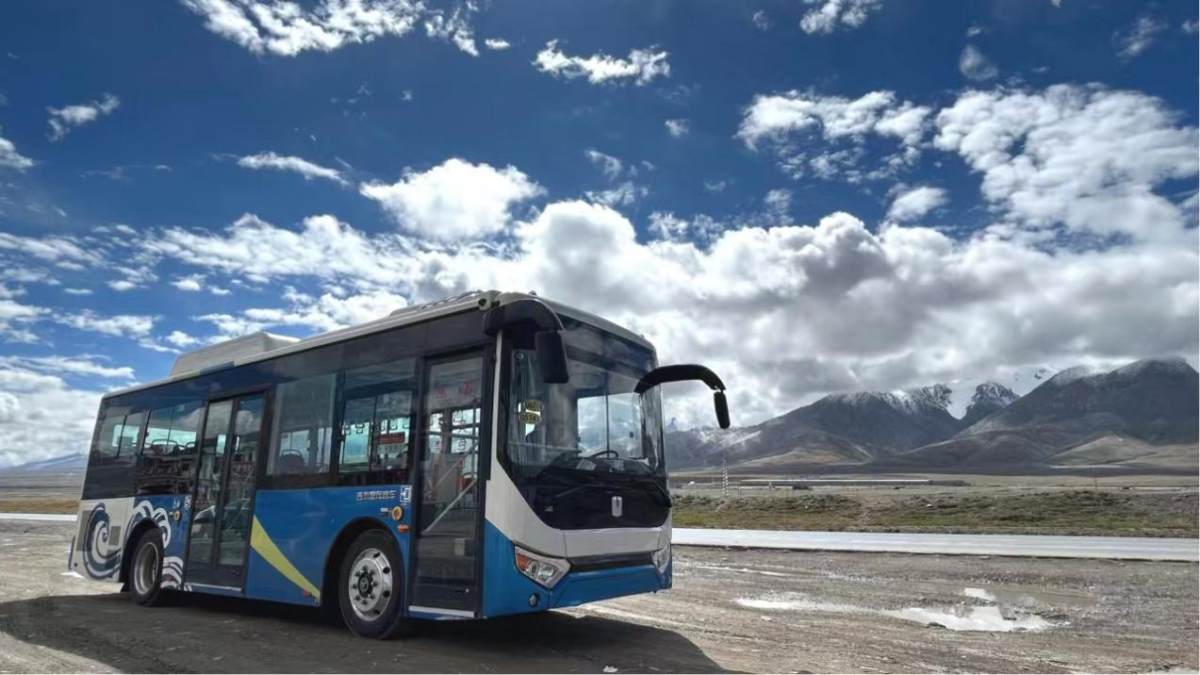 高海拔、低气温、山势陡峭,尽管天气和路况恶劣,但这对于全球首款醇氢增程动力城市客车来说都不是难题。在昆仑山口,检查站的工作人员说:“这款客车是目前全国唯一能开到昆仑山上的新能源公交车。”
