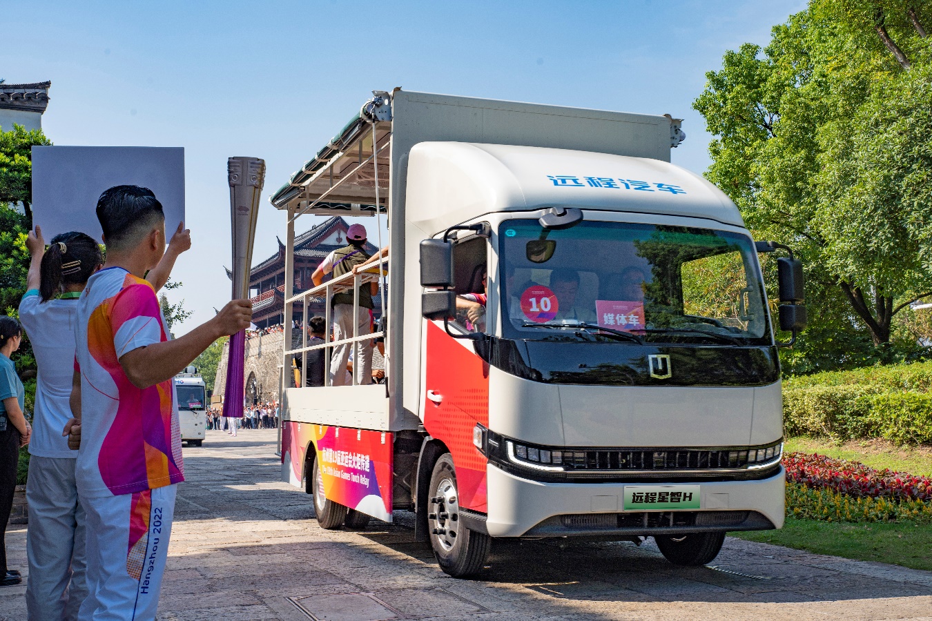9月20日,杭州第19届亚运会火炬传递最后一棒在杭州圆满收官。在火炬传递过程中,远程星智H8M甲醇增程式轻卡作为杭州亚运会火炬传递摄影车,一路陪伴火炬手和媒体记者走过浙江省11个地市,传递体育精神,展现浙江魅力!