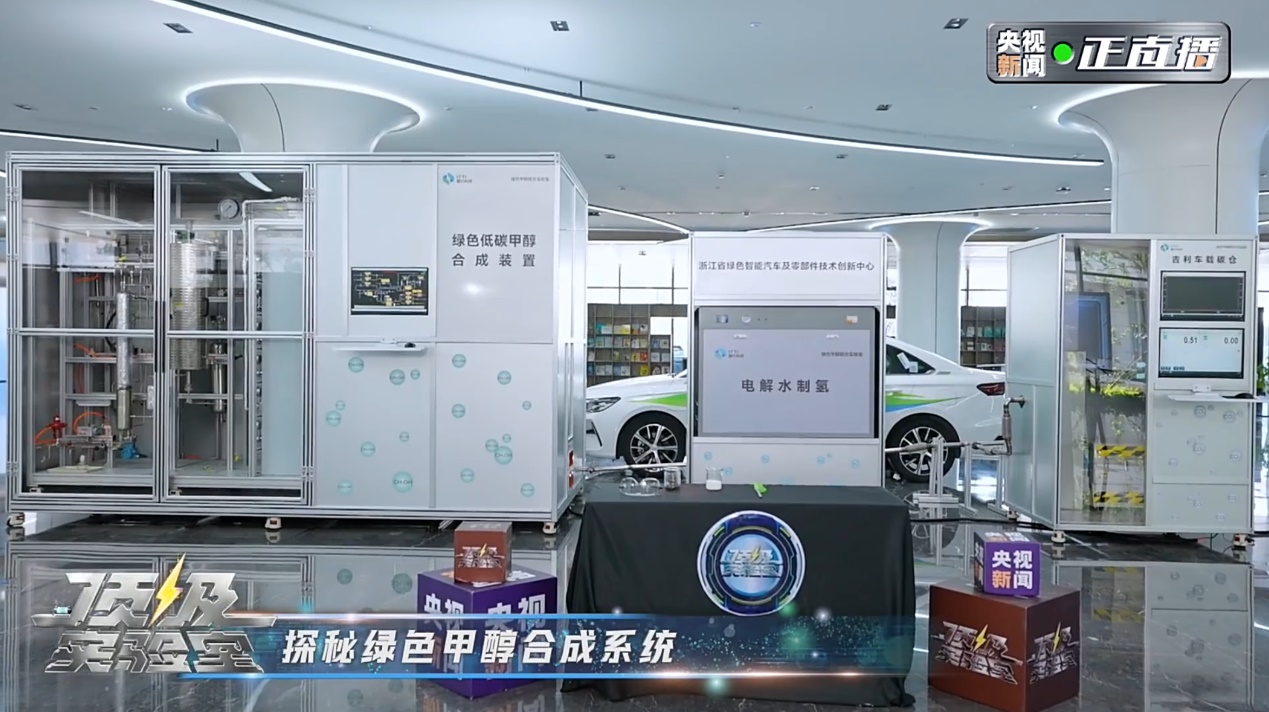 《顶级实验室》走进吉利控股集团协同创新中心,进行了绿色甲醇循环经济展示装置零碳甲醇制备实验。根据新型绿色甲醇合成技术制作的展示装置,它由包括吉利自主研发的车载碳仓、电解水制氢系统和采用吉利自主开发的高效催化剂组成,成功实现了二氧化碳资源化利用制取绿色甲醇。