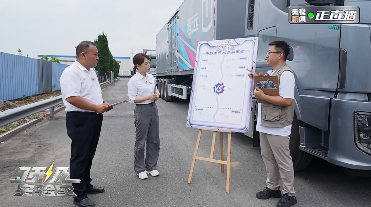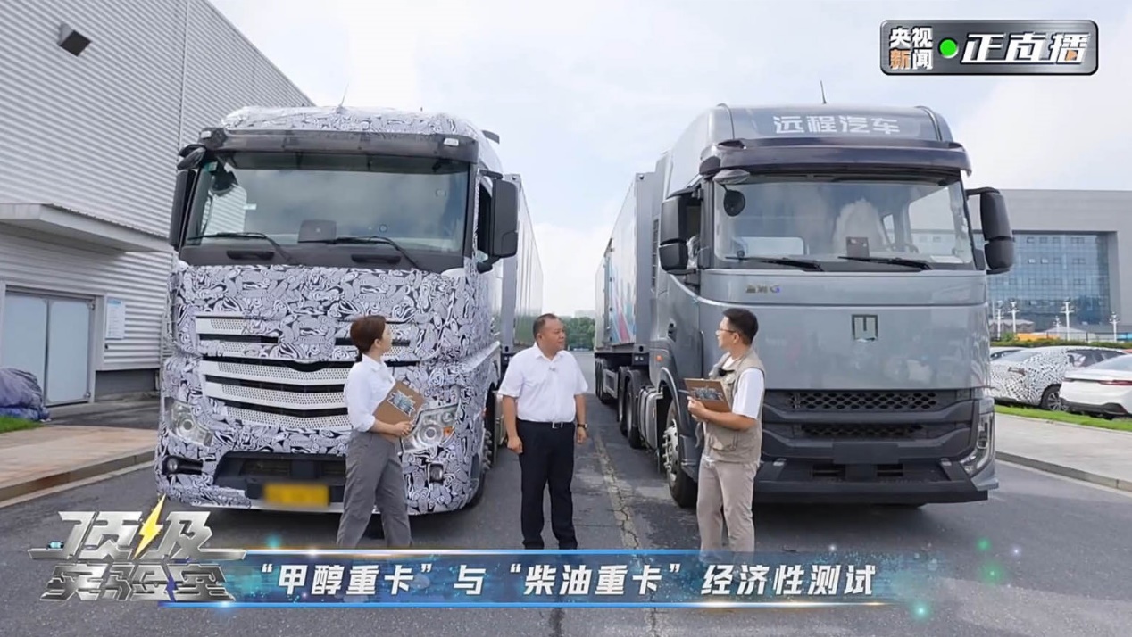 《顶级实验室》现场对比了远程甲醇重卡与国际豪华品牌柴油重卡的经济性。两位主持人分别乘坐远程甲醇重卡与某国际豪华品牌柴油重卡,进行从杭州至宁波总里程274KM分六段实测,按当时的路况运行,分别测试燃料消耗量,以计算实际产生的燃料成本。