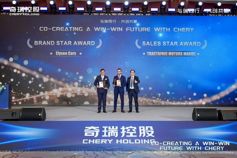 同心而行,不以山海为远。大会还隆重举行了2025年度优秀经销商颁奖典礼,设立“市场突破”“品牌之星”“销售之星”“优秀经销商”“特殊贡献”等多项荣誉,向过去一年为奇瑞商用车海外表现注入蓬勃动能的杰出伙伴致敬。一座座奖杯镌刻着拼搏足迹,更传递出奇瑞商用车与全球伙伴共担风雨、共享荣光的坚定承诺,进一步彰显“与瑞同行 共创共赢”的大会主题合作理念。