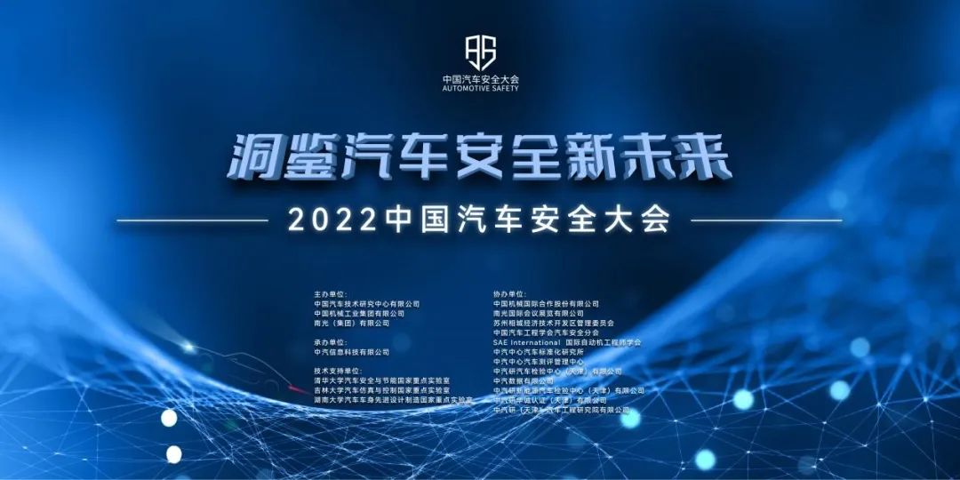 11月20-21日,由中国汽车技术研究中心有限公司(以下简称“中汽中心”)、南光(集团)有限公司(以下简称“南光集团”)、中国机械工业集团有限公司共同主办,中汽信息科技有限公司承办的2022中国汽车安全大会以线上方式召开。本次大会以“洞鉴汽车安全新未来”为主题,邀请企业专家及行业学者参会,共同分享、探讨汽车安全领域的前沿技术,搭建交流与分享的平台,共促汽车安全技术发展。