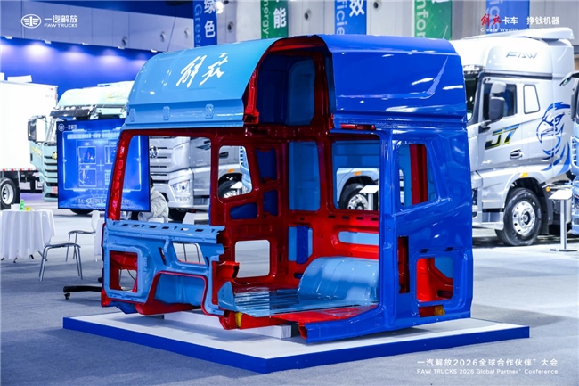 更具说服力的是,解放“2026全球合作伙伴大会”上,将一台驾驶室进行了剖切展示,把钢板型号、各种辅材,甚至特殊工艺细节……所有内部构造毫无保留呈现于合作伙伴和用户面前。此举不仅是行业首次,更是对“质量透明、开放信任”的诠释,让解放产品质量更加深入人心。